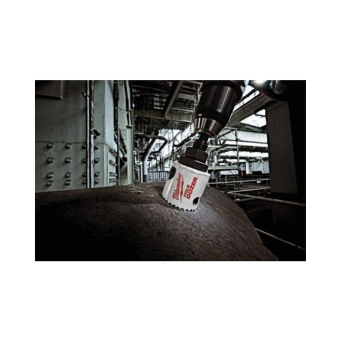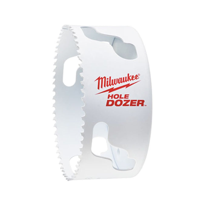 Milwaukee® HOLE DOZER™ Bi-metal novi zub testere za rupe od 3,5 TPI nudi najduži vek u metalnim aplikacijama. Odlikuje ga RIP GUARD™, dizajn zubaca napravljen sa više čelika iza oštrice za maksimalnu izdržljivost. RIP GUARD™ podržava ograničenu doživotnu garanciju na lomljenje zuba primenjenu na sve Milwaukee® HOLE DOZER™ bimetalne testere za rupe. Funkcija slotova za potpuni pristup rešava frustraciju uklanjanja čepa za manje zastoja i veću produktivnost između rupa. Najnoviji dizajn utora daje povećanu vidljivost pilota za precizno postavljanje i brže izbacivanje strugotine održavajući rezove hladnim. HOLE DOZER™ Thermoset premaz protiv trenja omogućava hladnije i brže sečenje. optimizovana za bežične alate, HOLE DOZER™ testera za rupe isporučuje 25% više rupa po punjenju i može da prihvati sve primene opšte namene. Milwaukee® ponosno proizvodi HOLE DOZER™ testere za rupe u SAD.