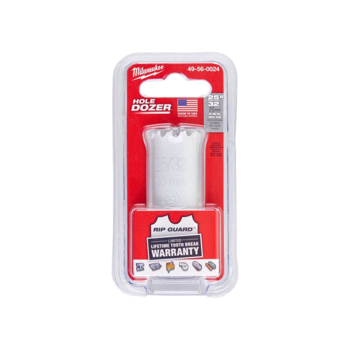 Milwaukee® HOLE DOZER™ Bi-metal novi zub testere za rupe od 3,5 TPI nudi najduži vek u metalnim aplikacijama. Odlikuje ga RIP GUARD™, dizajn zubaca napravljen sa više čelika iza oštrice za maksimalnu izdržljivost. RIP GUARD™ podržava ograničenu doživotnu garanciju na lomljenje zuba primenjenu na sve Milwaukee® HOLE DOZER™ bimetalne testere za rupe. Funkcija slotova za potpuni pristup rešava frustraciju uklanjanja čepa za manje zastoja i veću produktivnost između rupa. Najnoviji dizajn utora daje povećanu vidljivost pilota za precizno postavljanje i brže izbacivanje strugotine održavajući rezove hladnim. HOLE DOZER™ Thermoset premaz protiv trenja omogućava hladnije i brže sečenje. optimizovana za bežične alate, HOLE DOZER™ testera za rupe isporučuje 25% više rupa po punjenju i može da prihvati sve primene opšte namene. Milwaukee® ponosno proizvodi HOLE DOZER™ testere za rupe u SAD.
